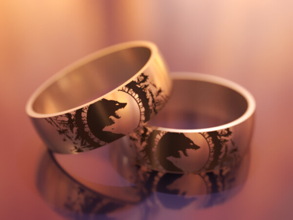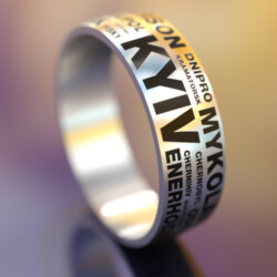 Останнім часом обручки з титану з гравіюванням стали користуватися великою популярністю. Титанове кільце з унікальним малюнком чудово підкреслить індивідуальність власника, вкаже на приналежність до спортивного або тематичного клубу, або довго служитиме як нагадування про що-небудь. Крім гравіювання на лицьовій стороні кільця, ми можемо додати унікальний напис на внутрішній стороні виробу. Ви можете вибрати один із безлічі шрифтів при формуванні Вашого замовлення.