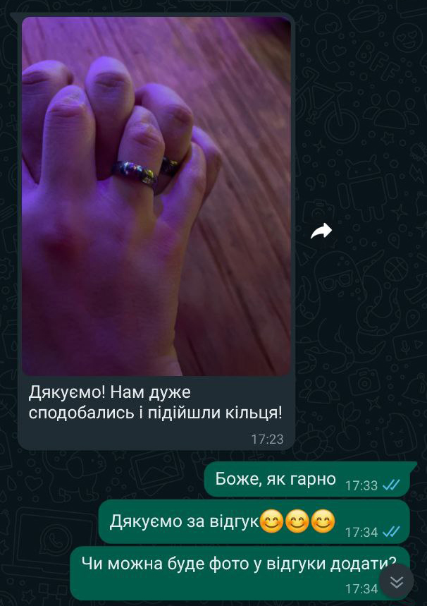 Ми вибрали титан як матеріал для наших виробів, керуючись насамперед його унікальними властивостями. Пріоритет у нашій роботі – повсякденний комфорт покупця та довговічність прикраси. Титан – “дружній” метал для організму людини. Кільце з титану легке, приємне на дотик, ніколи не темніє і не змінює структури в процесі носіння.