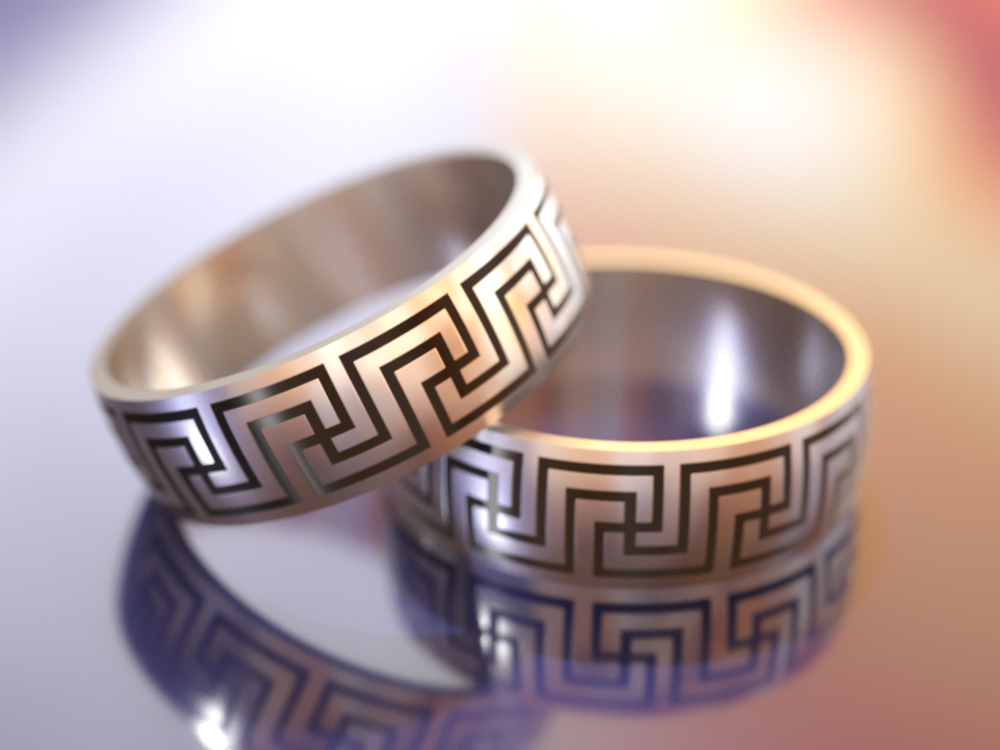 Існує безліч різновидів меандру, характерних для різних культур та тимчасових проміжків. Так, “подвійний меандр”, який ми використовували як гравіювання цього кільця, був характерний як для давньослов’янської, так і для давньоримської культури.